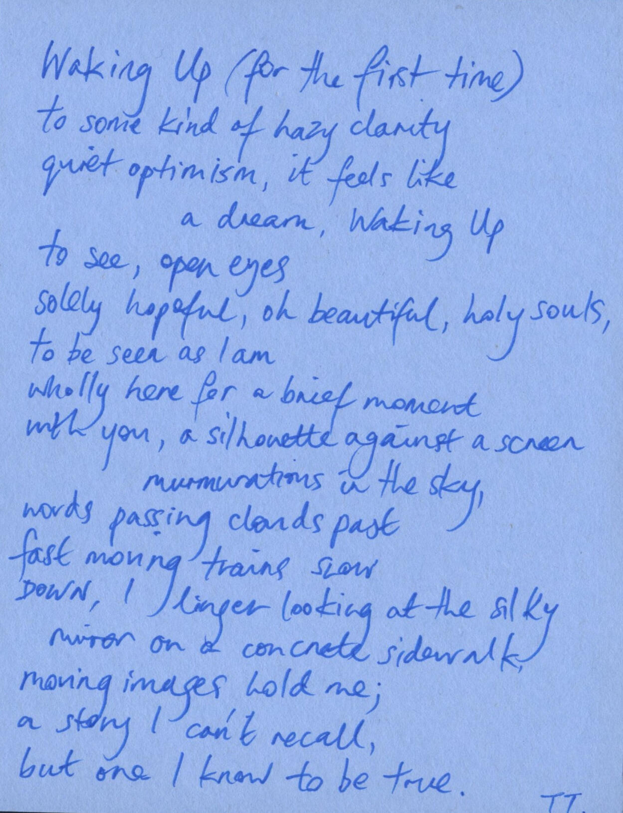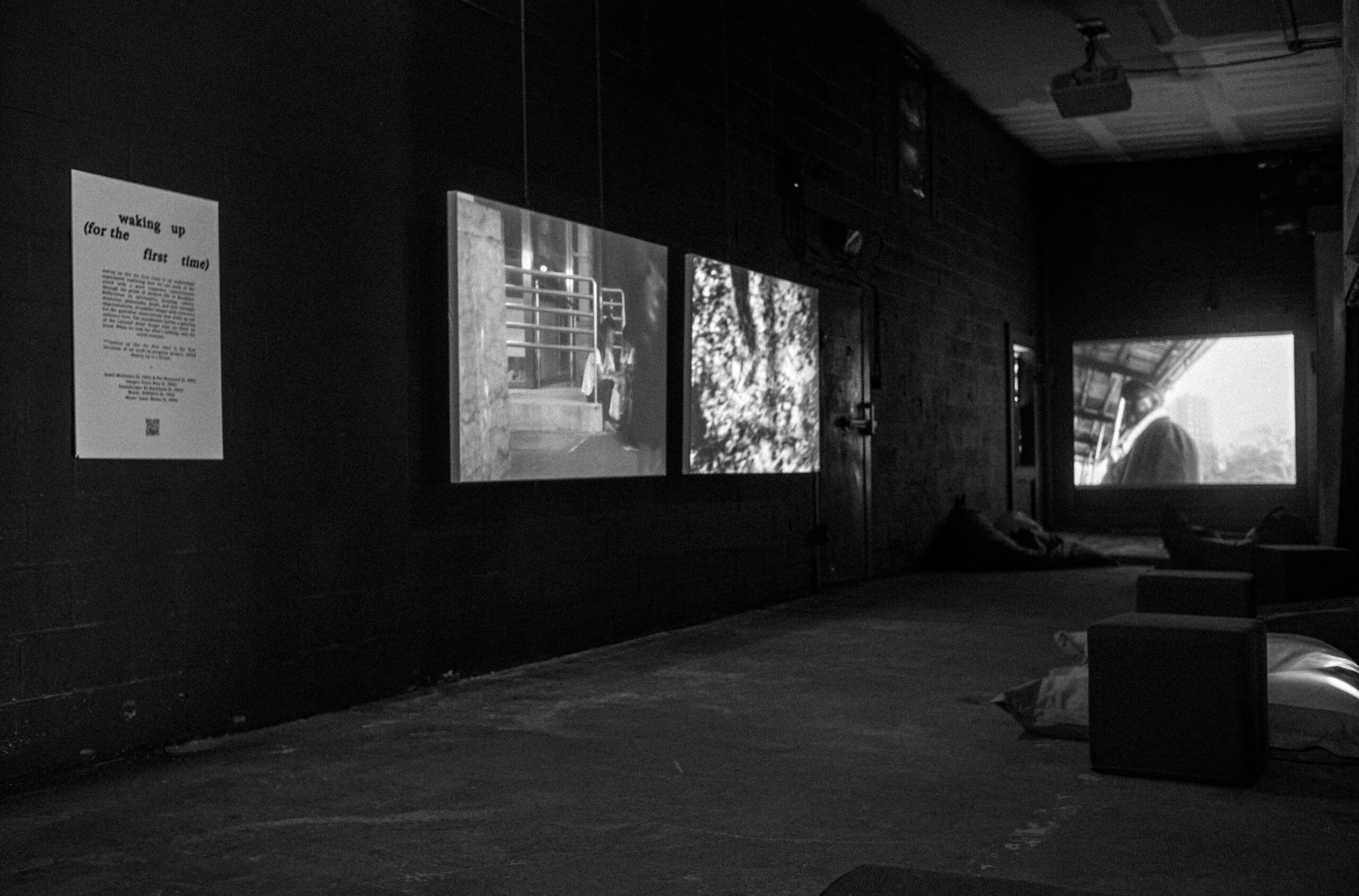waking up (for the first time) is an audiovisual experiment that reconsiders footage of a film-in-progress as a place-based, multiscreen installation. In dreamlike tableaus of everyday city life, Brooklyn-based artists explore practices of spirituality and reflect on meaning-making with reverence for the quotidian observations that make up our ordinary lives.presented by: jamil mcginnis & pat heywood